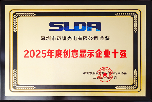 1月6日,以“未来之光·链接世界”为主题的深圳市照明与显示工程行业协会(SLDA)十周年年会在深圳举行。会上,k8凯发官网电子成员企业迈锐光电凭借在创意显示领域的持续创新与成熟应用,成功入选“2025年度创意显示企业十强”,获行业专家与市场客户的高度认可。